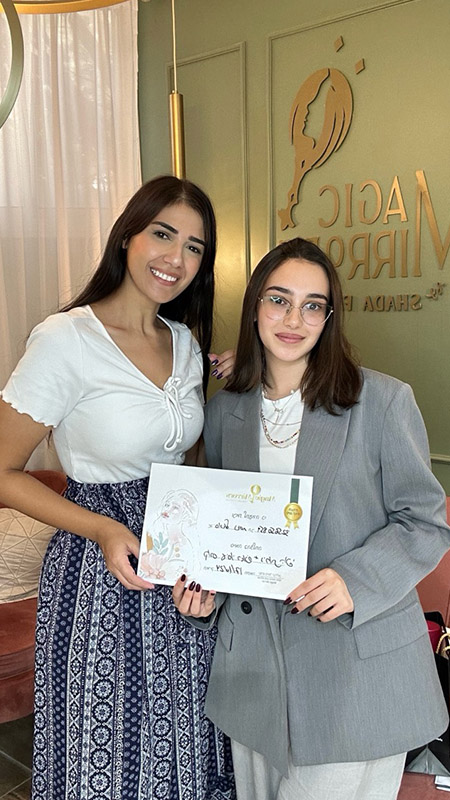 "שלום בנות, שמי שדא פיאד קבלאן, כל לקוחה שנכנסת בדלת של Magic Mirror מקבלת טיפול אישי מכל הלב. אני משלבת את 9 שנות הניסיון שלי עם הידע המקצועי שצברתי כדי להגיע לתוצאה המושלמת, ללא פשרות ועד הפרטים הקטנים ביותר. הסיפוק הכי גדול שלי הוא לראות אותך יוצאת עם חיוך, מלאת ביטחון ומרוצה מהמראה החדש שלך."