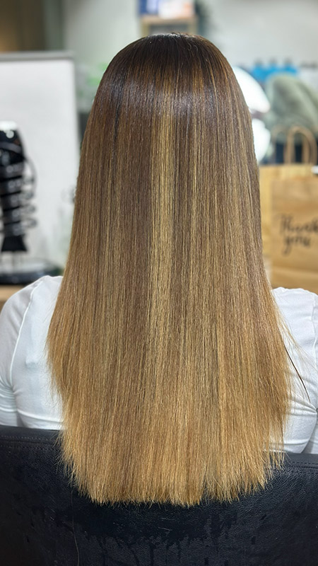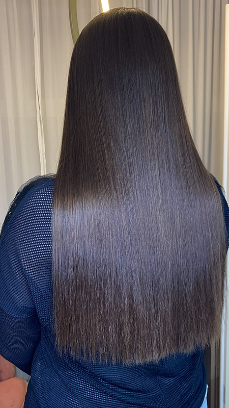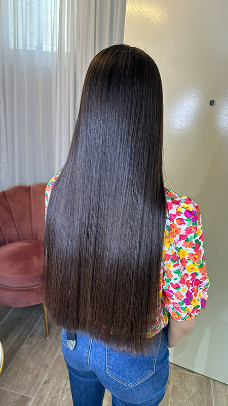 בסיום החלקת שיער אצלי אני חופפת את השיער בצורה יסודית בשמפו ומסיכה. הלקוחה יוצאת עם שיער נקי מחומרים ואין שום בעיה שהלקוחה תחפוף את השיער